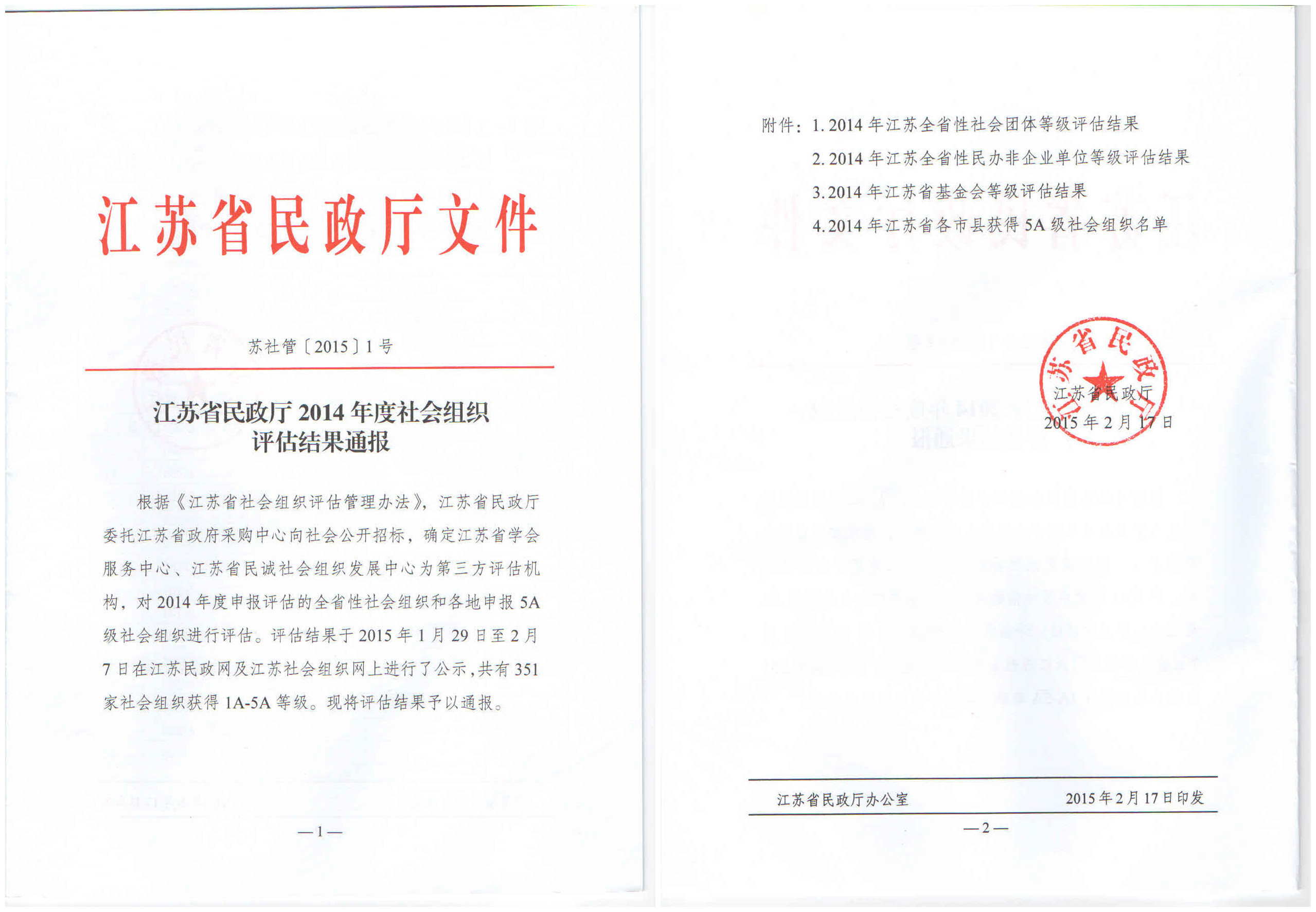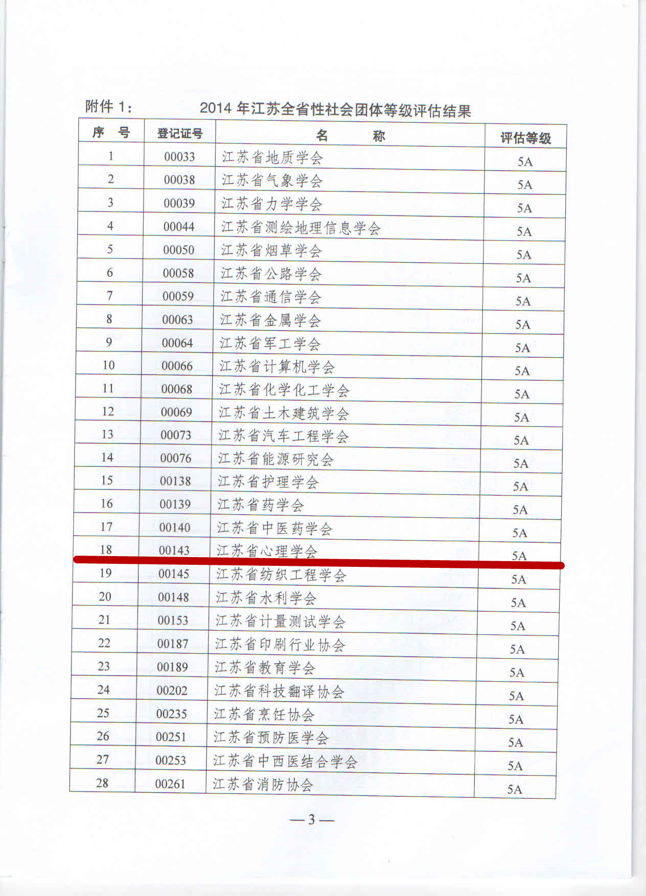江苏省心理学会在江苏省民政厅2014年度社会组织等级评估中脱颖而出,