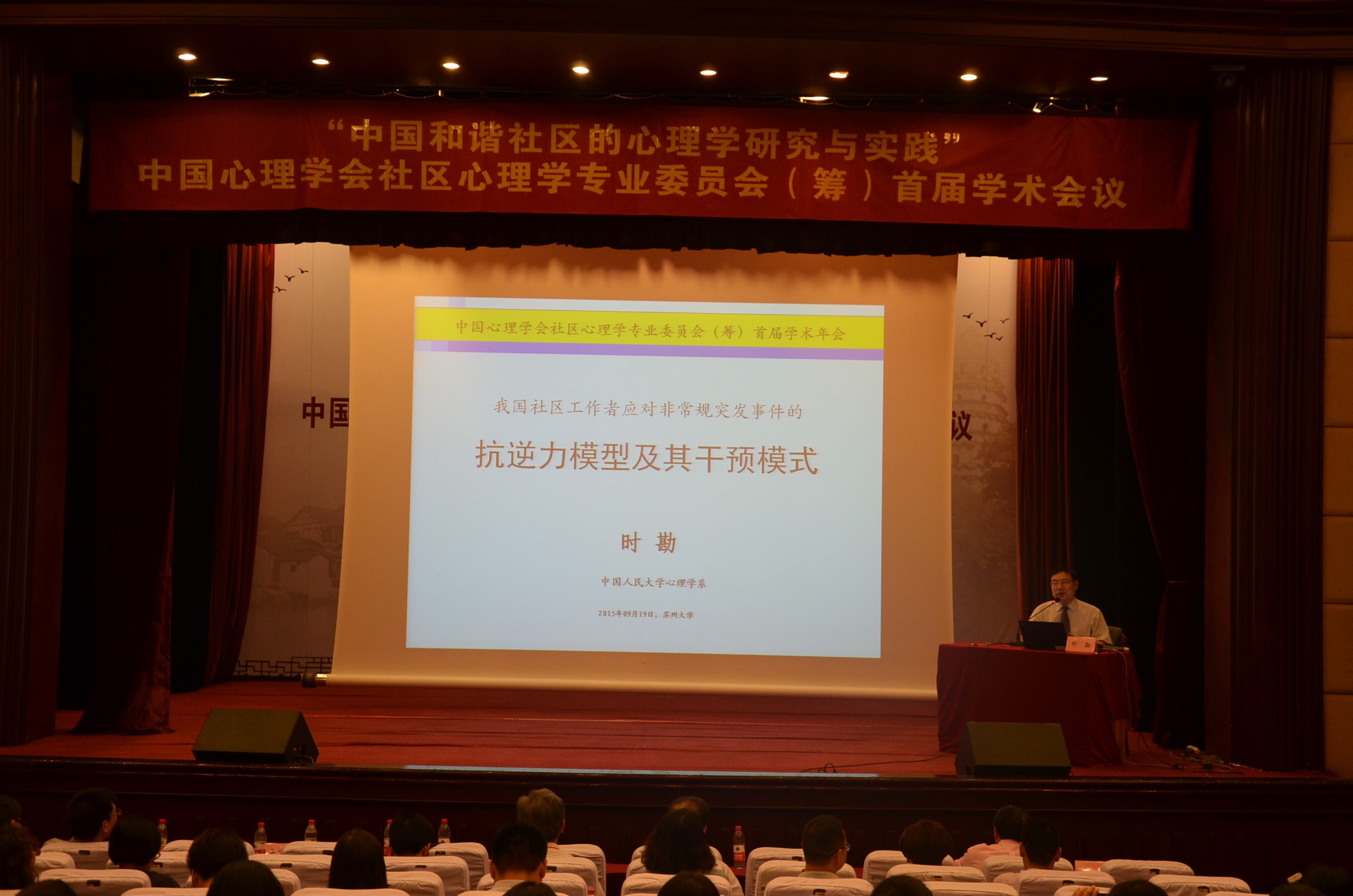 2015年9月19-20日,中国心理学会社区心理学专业委员会(筹)首届学术会议在苏州大学召开。本次会议由中国心理学会社区心理学专业委员会(筹)主办,苏州大学教育学院、江苏省心理学会社区心理学专委会(筹)、及苏州市心理学会承办,江苏省心理学会协办。