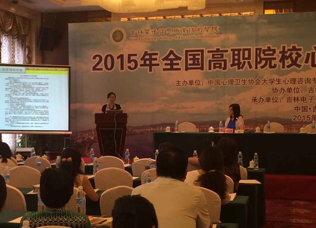 7月16日-7月17日,由中国心理卫生协会大学生心理咨询专业委员会高职院校心理健康教育工作委员会主办、吉林省教育厅协办、吉林电子信息职业技术学院承办的“2015全国高职院校心理健康教育学术年会”隆重召开。中国心理卫生协会大学生心理咨询专业委员会主任王建中,中国心理卫生协会大学生心理咨询专业委员会专委会常委兼秘书长马喜亭,中国心理卫生协会大学生心理咨询专业委员会高职院校心理健康教育工作委员会主任张旭翔,吉林省高校工委专职副书记、教育厅副厅长李彧威等领导莅临大会。来自全国18个省、自治区和直辖市的150名代表出席本次大会。我院党委副书记柯晓扬,学工处副处长袁忠霞参加了大会。