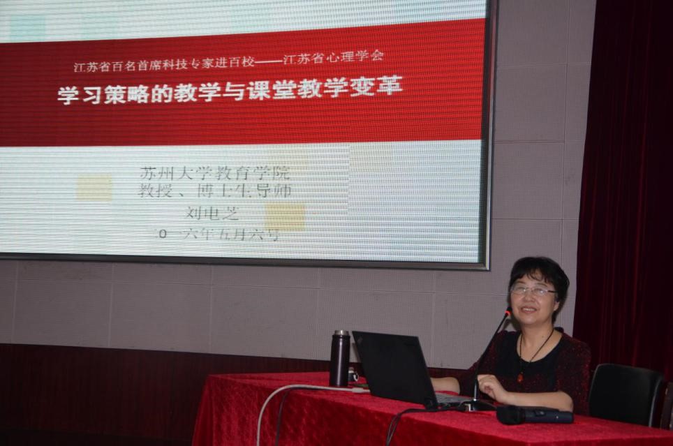 2016年5月6日下午,江苏省心理学会常务理事、苏州市心理学会理事长、苏州大学博士生导师刘电芝教授作为江苏省科协2015年认定的“首席专家”,走进苏州大学学术报告厅,为百余名洛阳名师带来了题为“学习策略的教学与课堂教学变革”的讲座。