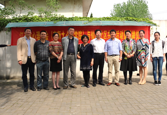 2016年4月14日下午2点,南京师范大学心理学院与南京市仙林街道仙鹤社区共建活动暨揭牌仪式在仙鹤社区内举行,本次活动旨在帮助社区广大老年人群体改善心理健康情况,提高生活质量,建立南师大心理学院大学生实践基地。本次活动由南京市仙鹤社区副主任吴松美主持。南京师范大学心理学院原党委书记冯大云,南京市仙林街道副主任徐骏,南京市栖霞区侨务办公室副主任沈芸,南京市仙鹤社区党总支书记吕庆祥,江苏省心理学会副理事长兼秘书长、南师大心理学院副院长邓铸,南师大心理学院党委副书记王惠,南师大心理学院院长助理陈庆荣、南师大心理学院党委秘书李湘晖以及仙鹤社区部分党员代表出席了此次仪式,我院的部分志愿者们也参与了本次活动。