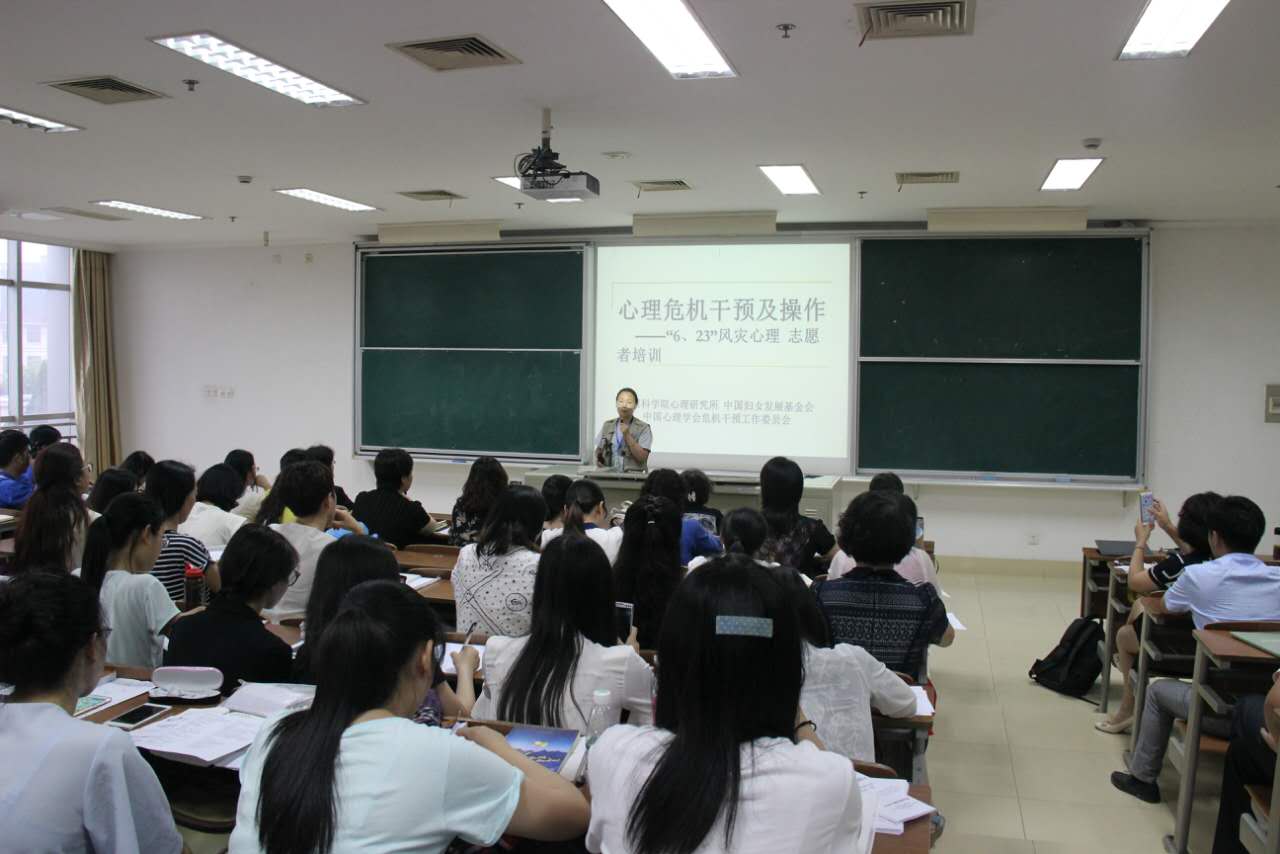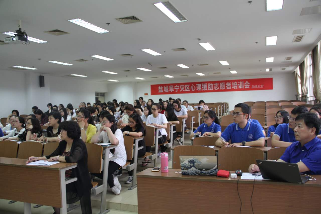下午2点半,中科院心理研究所全国心理援助联盟、江苏省心理学会、盐城师范学院协力举办了“盐城阜宁灾区心理援助志愿者培训会”。盐城师范学院大学生心理健康中心主任李萍教授主持本次培训会,安媛媛老师和来自中科院心理所全国心理援助联盟的李慧杰老师为志愿者们讲授了专业的心理援助知识。