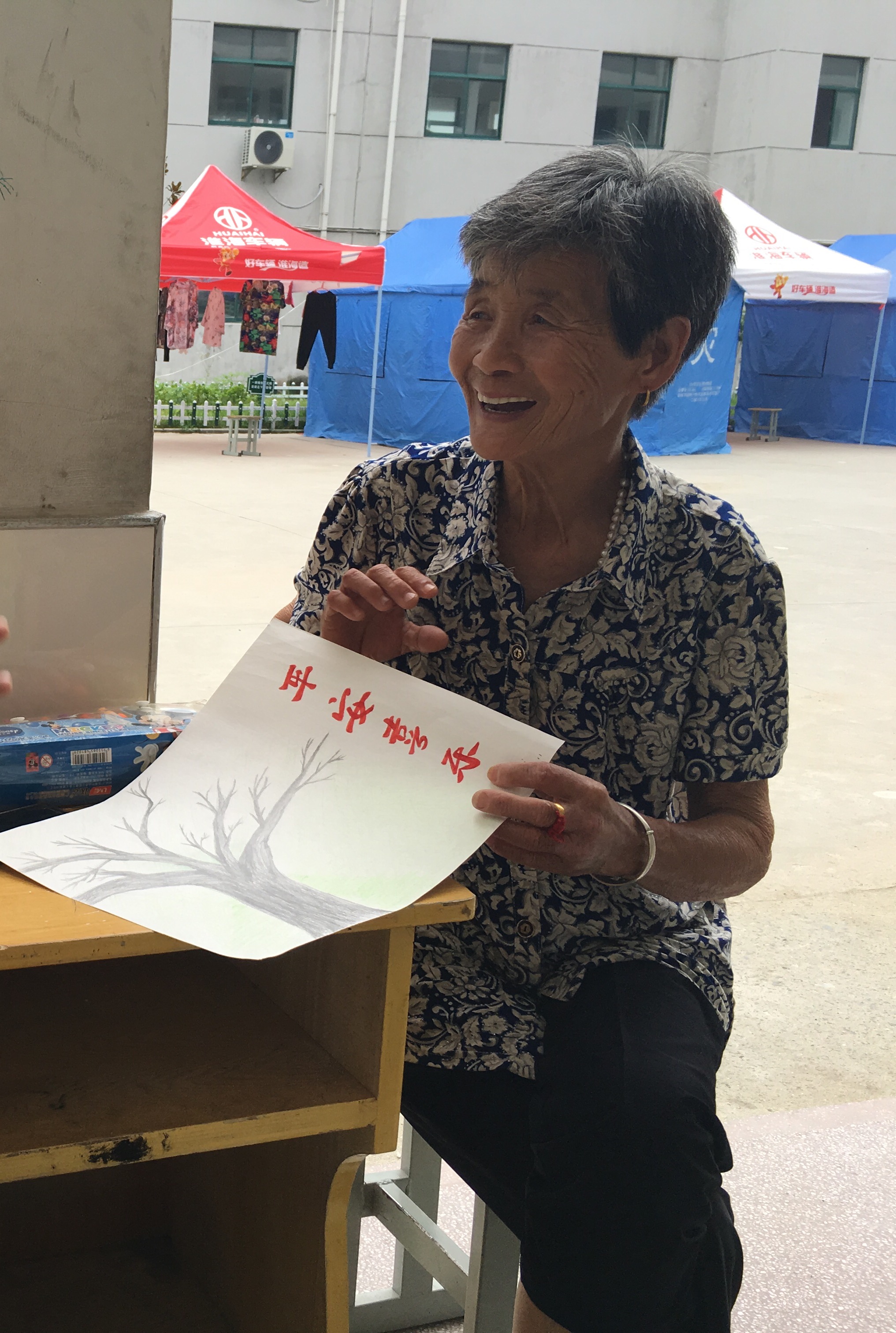7月11日,江苏省心理学会“盐城.心在行动”苏州大学心理援助志愿者小组继续在板湖镇受灾群众安置点开展心理援助工作,陪伴与安抚这里的受灾群众,并将这几天与他们互动的快乐瞬间洗成照片分发给他们,志愿者这一暖心的小行为受到他们热烈的响应,开心的互相将自己的照片与他人进行互换欣赏。