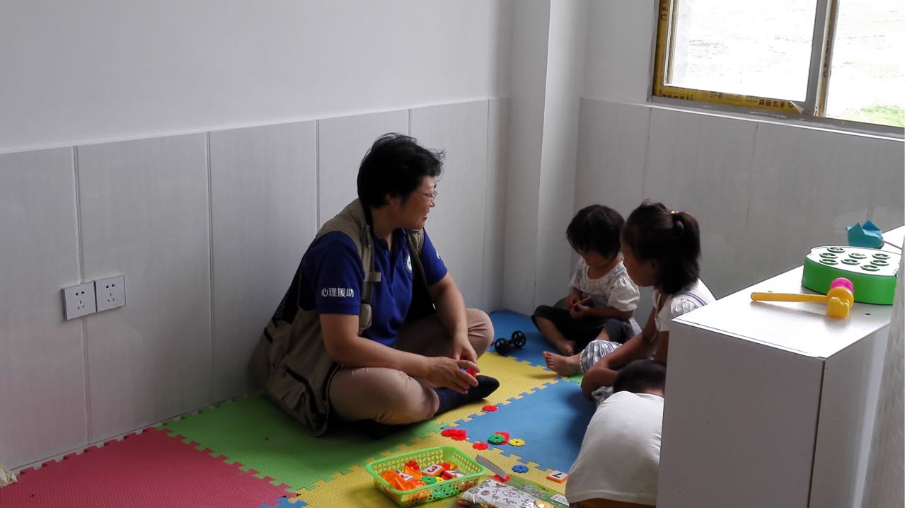 7月12日,周朝英老师和闵霈飞老师随于洋站长乘坐中巴车来到板湖镇孔荡村的“妇儿之家”。周围灾民们在自救互救,忙着重新盖房。9点左右,10余名孩子陆续来到“妇儿之家”。现正值暑假,有条件的孩子投奔亲戚家,而这些孩子因白天没有大人照看,于是主动来到“妇儿之家”,年龄小的还没上幼儿园,大的已经6年级。两位老师陪着她们一起折纸、玩玩具、做游戏、讲故事。晚上,两位老师针对孩子们在“妇儿之家”表现出的心理现象,与于洋站长交流并制定出相应的措施,决定于明天开始实施。最后,工作人员就明天下午团体活动课的具体安排做了详细讨论。