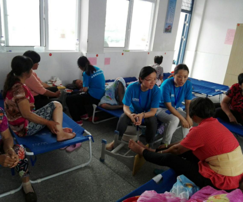 与此同时,江苏省心理学会“盐城.心在行动”南京师范大学心理学院第二批、第三批志愿者分别进行了计桥村回访、双桥村走访、以及硕集中心小学安置点的心理援助工作。在回访过程中,经过第二批志愿者的介绍和与村民的相处,南京城市职业学院心理健康中心专职教师石静老师带领的第三批志愿者与村民建立了良好的关系。村民表达了对心理援助志愿者的欢迎和感谢,并且期待接下来的心理援助工作。由南京农业大学讲师王世伟老师带领的走访小组,通过与双桥村村民的交谈,发现双桥村以老人为主,大多数老人情绪比较稳定,饮食、睡眠都比较良好,日常生活逐渐恢复正常。有极个别老人出现了失眠、多梦、食欲下降、情绪波动等症状,走访小组进行心理疏导,发放并讲解《灾后常见心理反应手册》,介绍了工作电话和援助点,便于有需求的老人寻求帮助。在江苏师范大学心理健康中心薛静华副教授的带领下,通过与硕集中心小学安置点的几十名老人的交谈发现有老人出现了闪回、噩梦、激警等心理现象,小组会在接下来的工作中继续与老人们沟通,对老人们的心理状态进行评估与筛查,通过陪伴、倾听,开展团辅活动等帮助老人们缓解不良心理症状。