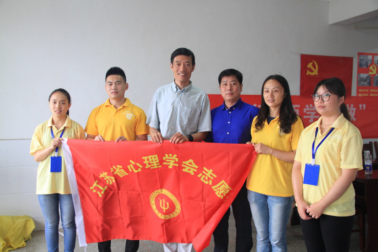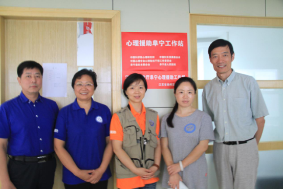 2016年7月12日下午,江苏省心理学会理事长傅宏教授、副理事长邓铸教授带领部分心理援助志愿者冒雨驱车到达阜宁县城。