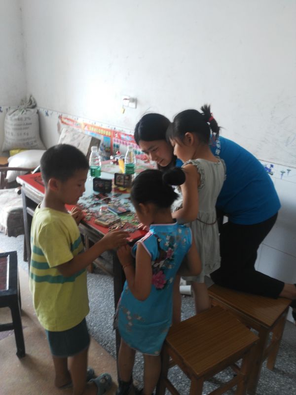 与此同时,由南京医科大学工会调研员王丽雅老师带领志愿者对玲玲(化名)家进行回访并对安置点进行了考察。在玲玲家里,王老师和玲玲爸爸以及玲玲奶奶进行了沟通与交流后,开始陪伴玲玲玩游戏。玲玲愿意在志愿者的带领下走出家门玩耍,对自己感兴趣的玩具、事物投入度较高,不再时刻关注奶奶是否在身边,情况较昨天有明显的好转,同时,玲玲爸爸与玲玲奶奶的日常生活也在恢复。在安置点,小组成员了解了各村民的生活现状,通过对他们进行心理援助,帮助他们进行感情的宣泄。
