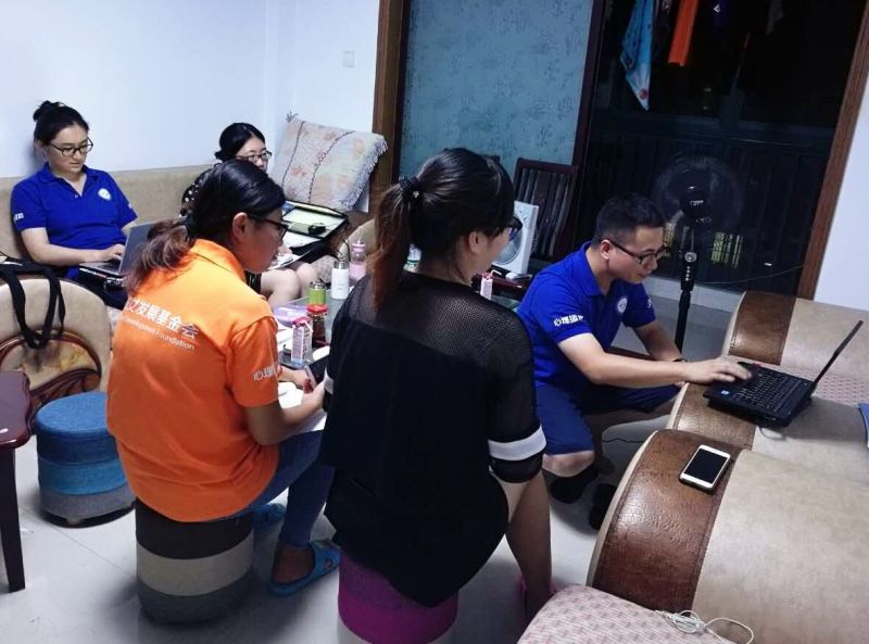 7月27日上午,江苏省心理学会“盐城.心在行动”南京晓庄学院“陶老师”工作站心理援助工作组赵兆、杨佳佳老师在阜宁县人民医院心理援助站值班,接待了一位医护人员的家属。中午,两位老师在住院部探访了一位在灾后搬迁过程中发生交通意外的老奶奶,在安抚情绪之后,向其确认了后续的跟进事宜。下午,两位老师走访一位在风灾中受伤瘫痪的村民,了解当事人及其家属目前的生活情况和心理状态,讨论他们拥有的社会支持和内在资源,帮助当事人缓解情绪,给予其丈夫和儿子支持,告诉他们需要时可通过电话与心理援助站联系。27日晚,赵兆老师受邀对阜宁工作站的志愿者进行了专业技能培训,讲述了叙事社区工作的“生命树”技术,并解答了志愿者疑问。