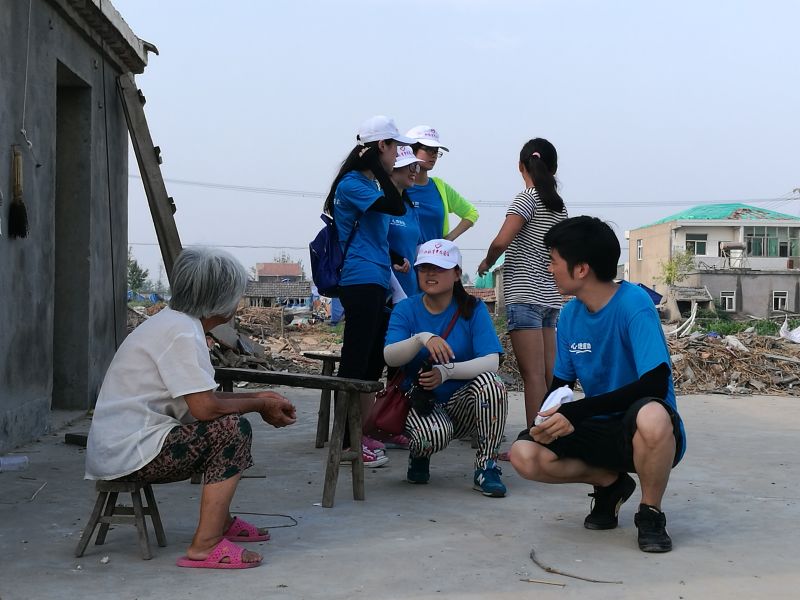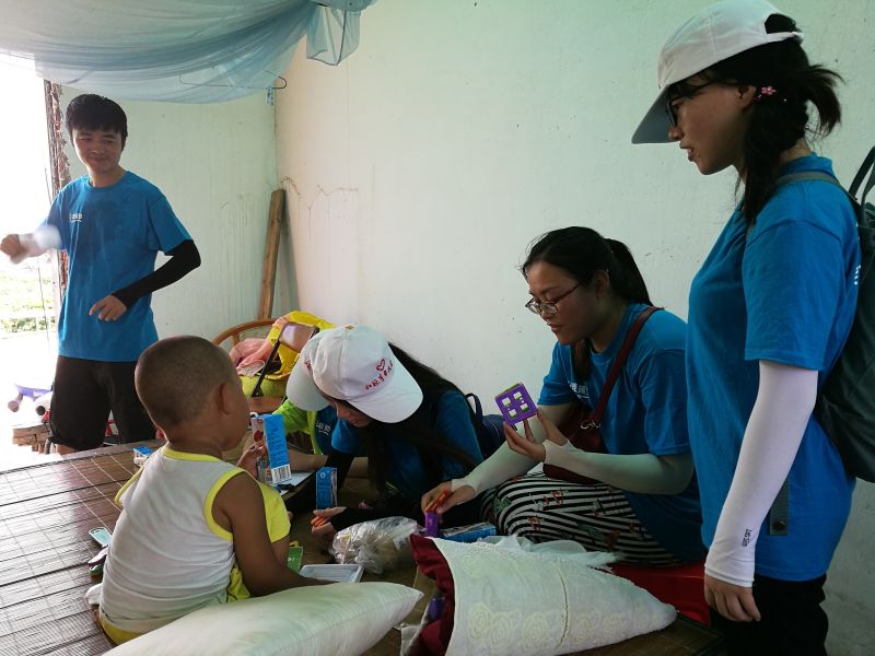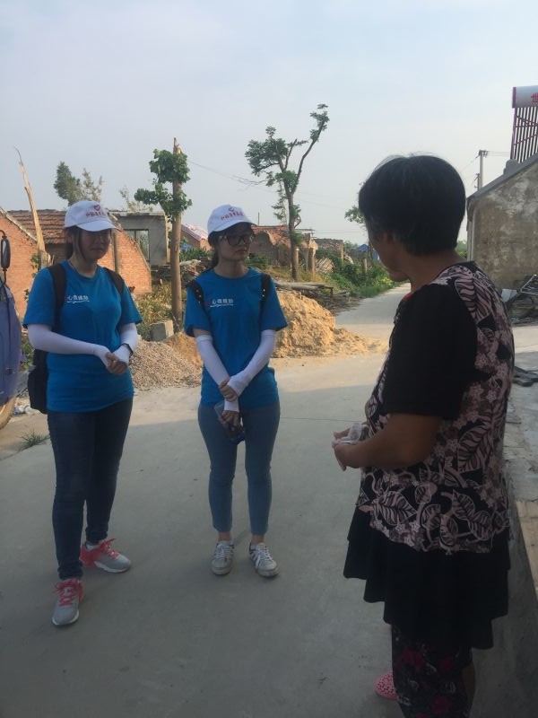 与此同时,中国药科大学辅导员张衡老师和中国矿业大学辅导员卫慧芳老师带领第二小组的志愿者来到双桥村回访重点个案。志愿者首先来到接受多次心理干预的孩子家中,交谈中了解到其近期睡眠质量较好、情绪稳定,人际交往恢复正常水平。随后,志愿者来到有明显分离焦虑的儿童小明(化名)家中。小明看到志愿者来访,非常兴奋,主动的向志愿者展示自己的新玩具,并礼貌地请志愿者到屋内乘凉。志愿者陪小明一起画画,发现小明喜欢选择黄色、粉色等暖色系着色,表现出积极、乐观的心态。针对小明在志愿者离开时表现出强烈的不舍,抱着志愿者不肯放开的情况,志愿者采取“共同约定”的方式,引导小明建立“安全圈”,学习正常分离,经过耐心的沟通,小明主动地挥手向志愿者告别。最后,志愿者来到某老人家中,老人正在家里和邻居聊天,志愿者来到之后,村民们主动询问再次遇到大风时如何改善不良情绪,志愿者对他们进行了耐心的解答和沟通。在老人交流中,她逐渐开放自己,能够顺畅地表达情感,主动讲起其在年轻时经历的类似情绪感受,志愿者认真地倾听。