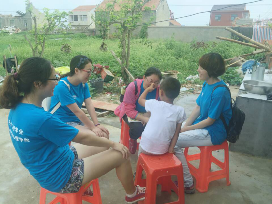 当天下午,由中国矿业大学心理健康中心李红娇老师带领的江苏省心理学会“盐城.心在行动”第四批心理援助小组和由无锡科技职业学院教师董丹辉带领的江苏省心理学会“盐城·心在行动”第五批心理援助小组汇合,随后一同前往计桥村、双桥村,第四批志愿者向第五批志愿者详细介绍了各村受灾情况以及目前已受访村民的具体情况,包括家庭基本情况、回访次数和已取得的干预效果等。同时,第四批志愿者分别向需要继续回访的村民介绍了第五批志愿者的情况,并表示第五批志愿者将会延续他们之前的工作,继续对他们进行心理援助。临走时,第四批志愿者向村民进行了告别。
