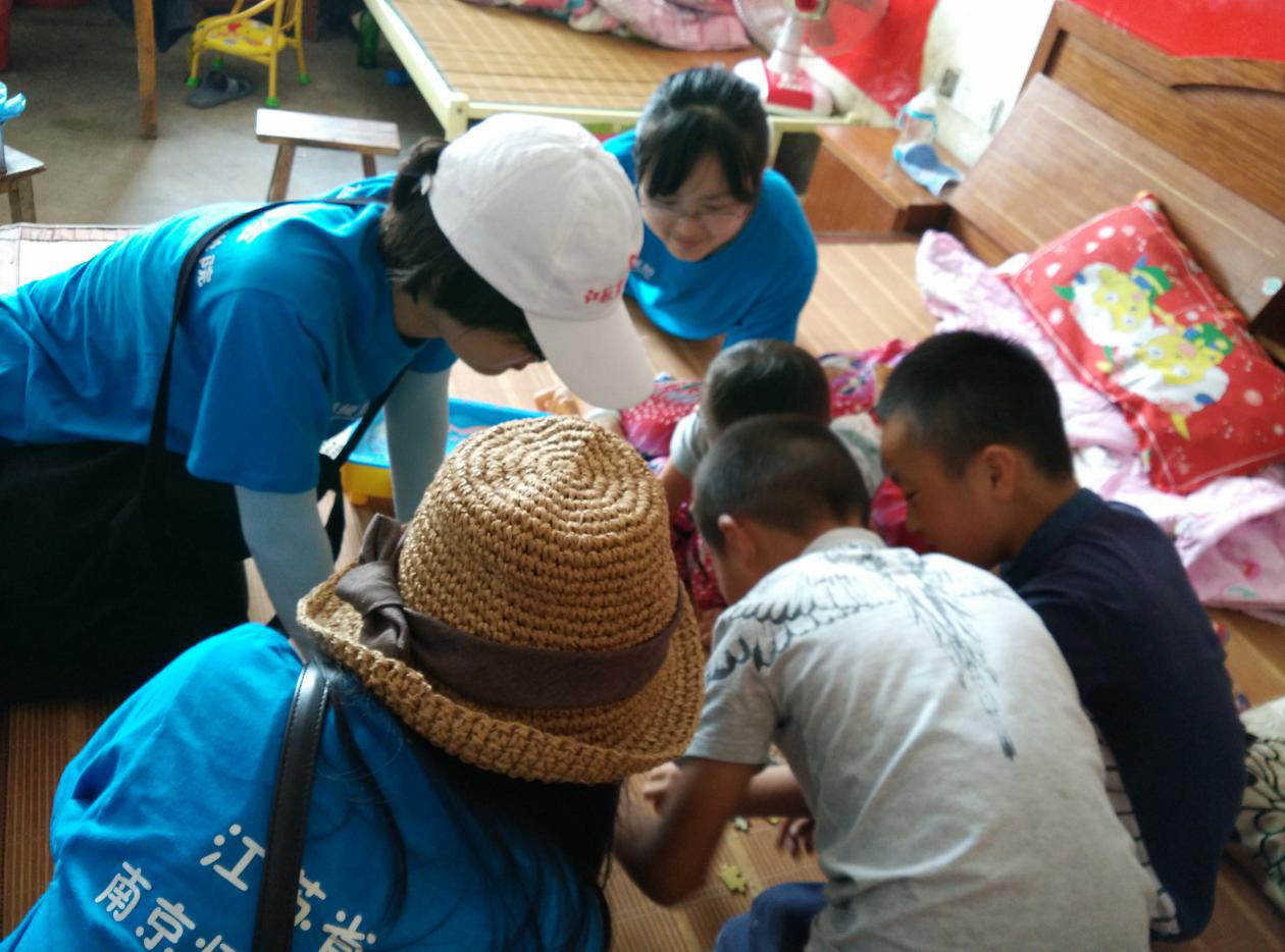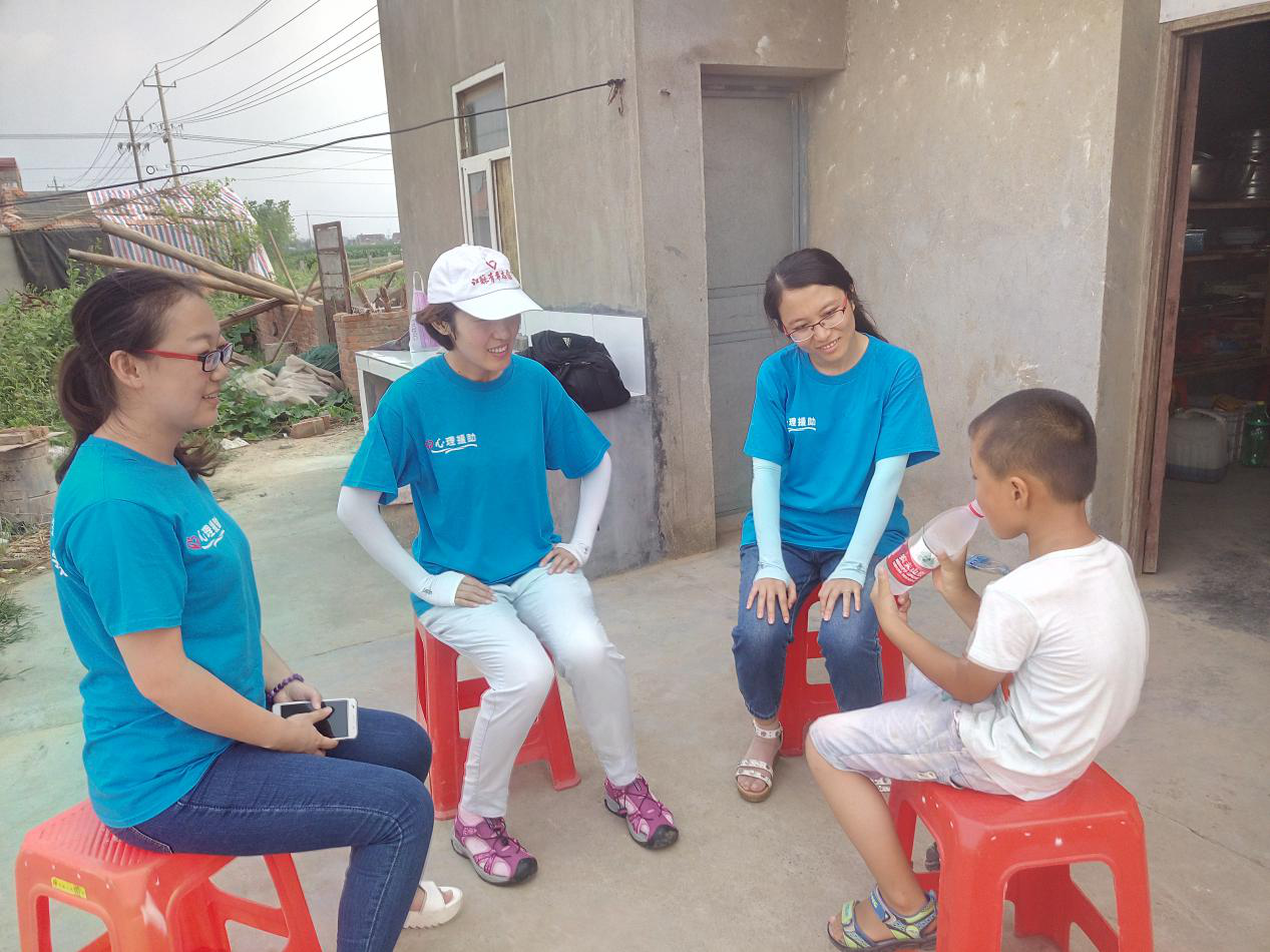 与此同时,由南师附中江宁分校心理老师周建带领的第二小组心理救援志愿者来到计桥村。当志愿者团队来到小杰(化名)家附近时,小杰早已经等候在路口,远远地望见志愿者团队独特的蓝色队服,立刻飞奔地投入志愿者的怀抱。小杰在这次灾害中失去了母亲,家人担心小杰的状况,主动寻求了心理援助。此次心理援助小杰作为重点关怀的对象,得到了志愿者团队持续的心理陪伴和支持。小杰的情况明显的到了改善,很喜欢志愿者陪伴他一起做游戏,与志愿者建立了深厚的感情。但周建老师表示:小杰对志愿者们展现的信任和感情令人感动,同时也提醒志愿者们要将短期的欠稳定的社会支持转化为长期的稳定的社会支持,这样才能更有利于小杰情况的稳定和未来成长。