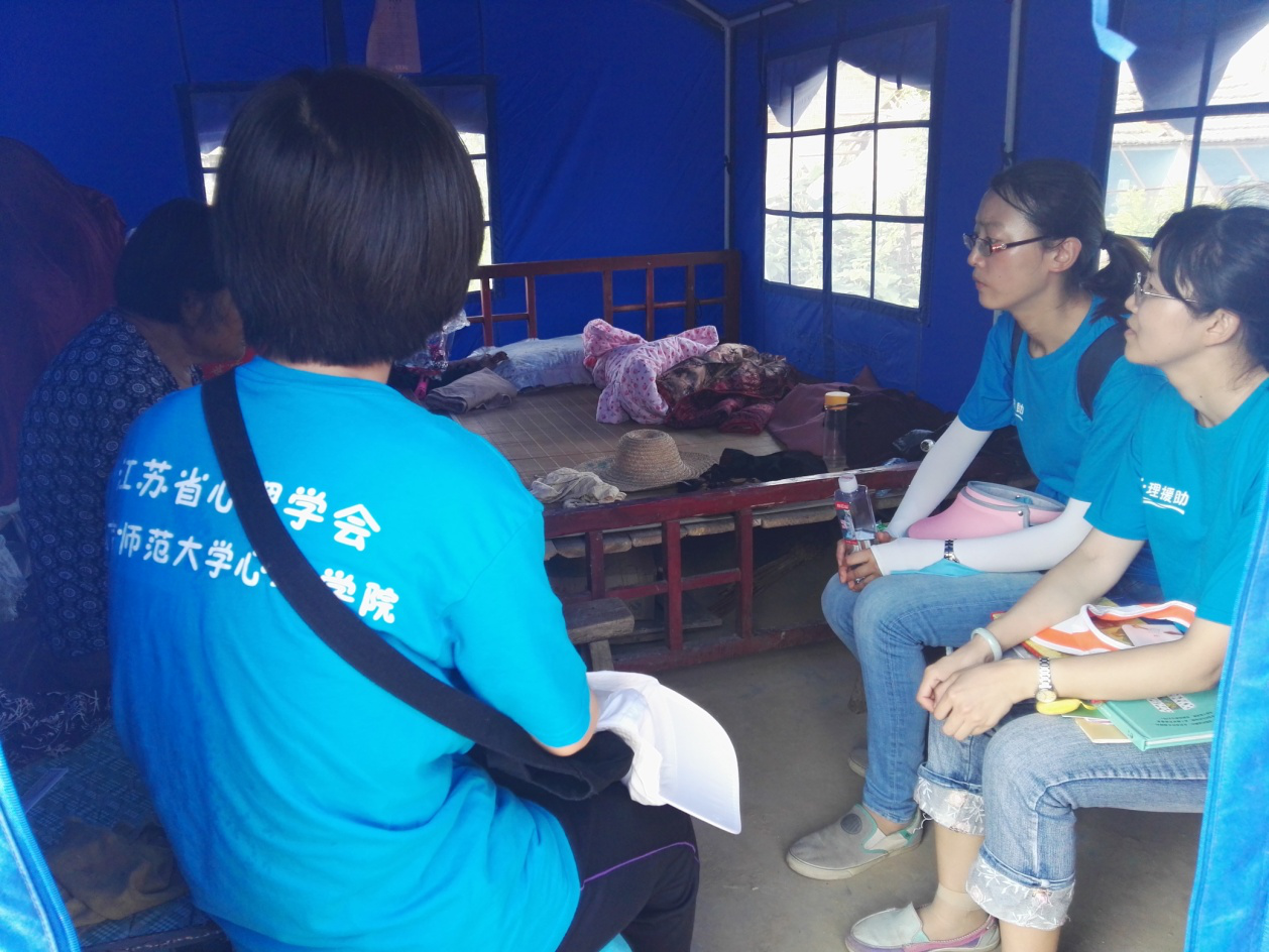 与此同时,由南师附中江宁分校心理老师周建带领的第二小组心理救援志愿者走访了3人,回访6人,共计9人,其中新增个案1例,结案1例。本次回访过程中,志愿者根据实际需要,将一个家庭中的几个个案整合,以家庭整体作为一个单位开展工作。计爷爷(化名)在风灾中失去了外孙女,自家开的小超市连同物资也全部损毁,一时间难以维持生计。由于计爷爷的性格和家庭矛盾关系,其目前一个人居住在自家旁边搭建的帐篷内,身边缺乏亲人,饮食三餐以方便面为主,在表达抱怨的同时,内心也体现出绝望和悲凉,更深层次的是希望得到家人关怀的心理渴求。针对这种情况,志愿者团队专门研究和讨论了干预对策,打算以“家庭治疗”的理念和技术来帮助在龙卷风灾害中受到伤害的一家人,包括依然无法从丧女之痛中走出的母亲,与计爷爷长期分居缺乏沟通的计奶奶(化名),调整家庭关系,整合家庭力量。此外,志愿者们分别还走访了勇敢救出三个村民的王婆婆(化名),她对志愿者描述这段时间以来浑身无力,不想做事,从周边邻居与亲属处了解到,王婆婆出现意识狭窄,记忆力变差“脑子糊”等表现。但是志愿者发现今天王婆婆刚从田里回来,正在家里做饭,还喂鸡照顾动物,说明社会功能正在逐步地恢复,情况得到了好转。
