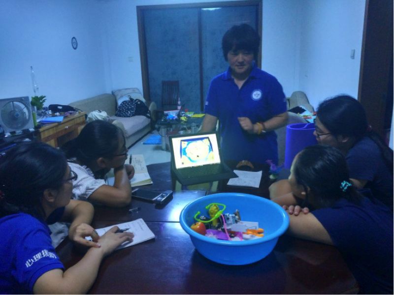 当天晚上,徐红梅老师为孔荡村妇儿之家大学生志愿者上了一堂有关沙盘游戏的课,介绍沙盘的开启及沙盘游戏的宗旨,通过对沙盘中的沙、沙具、摆放方式、沙画类型等要素的阐释,初步展示了沙盘游戏的工作过程,课后大学生志愿者们表示深受启发。