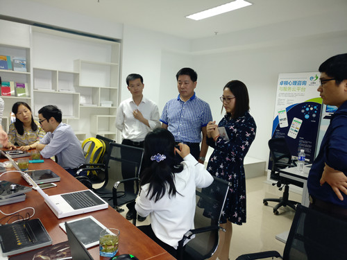 2017年5月19日,江苏省心理学会秘书处党支部书记邓铸教授、组织委员应荣华、宣传委员施聪莺等赴江苏省卓顿信息科技有限公司进行参观与指导并听取创业进展。