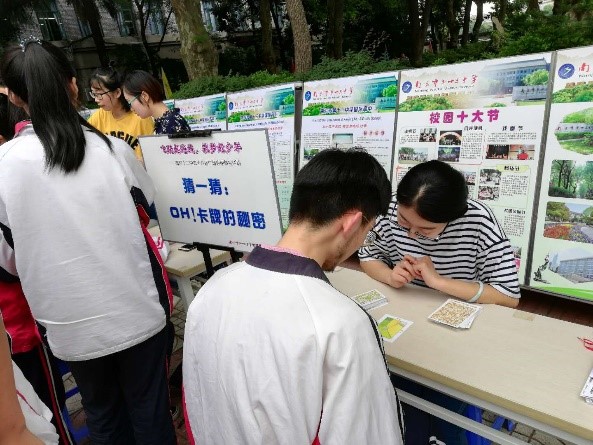 2018年5月24日,为普及心理健康知识,推动中学生心理健康教育工作,江苏省心理学会在南京十三中学开展了“525心理健康日广场活动”。此次广场活动主题是“飞越起跑线,筑梦趁少年”,共有四轮活动环节,分别是测一测:左右脑偏好问卷及成就目标定向测验、猜一猜:了解OH!卡牌的秘密、玩一玩:体验职业兴趣岛的魅力、动一动:和朋友一起参与信任与合作的考验,丰富的心理体验环节的设置让学生们热情高涨,希望通过此次活动,大家都能更好的管理好自己、照顾好自己、爱护好自己,从而更自信、更有能力、更从容的关爱他人。