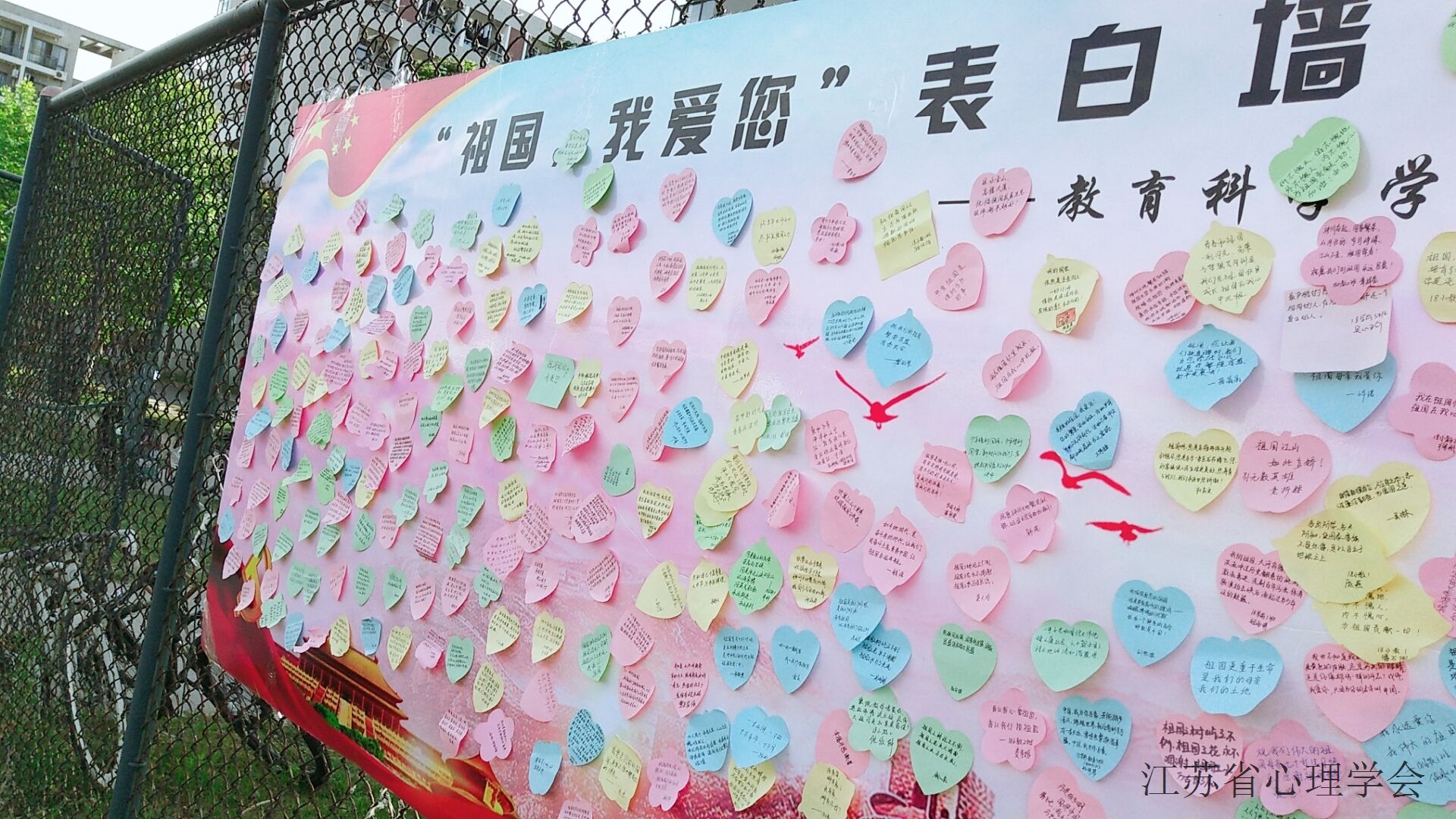 升旗仪式结束后,还举行了“祖国 我爱您”表白墙活动。同学们纷纷将自己对祖国的祝福写在便利贴上,并贴到表白墙上。