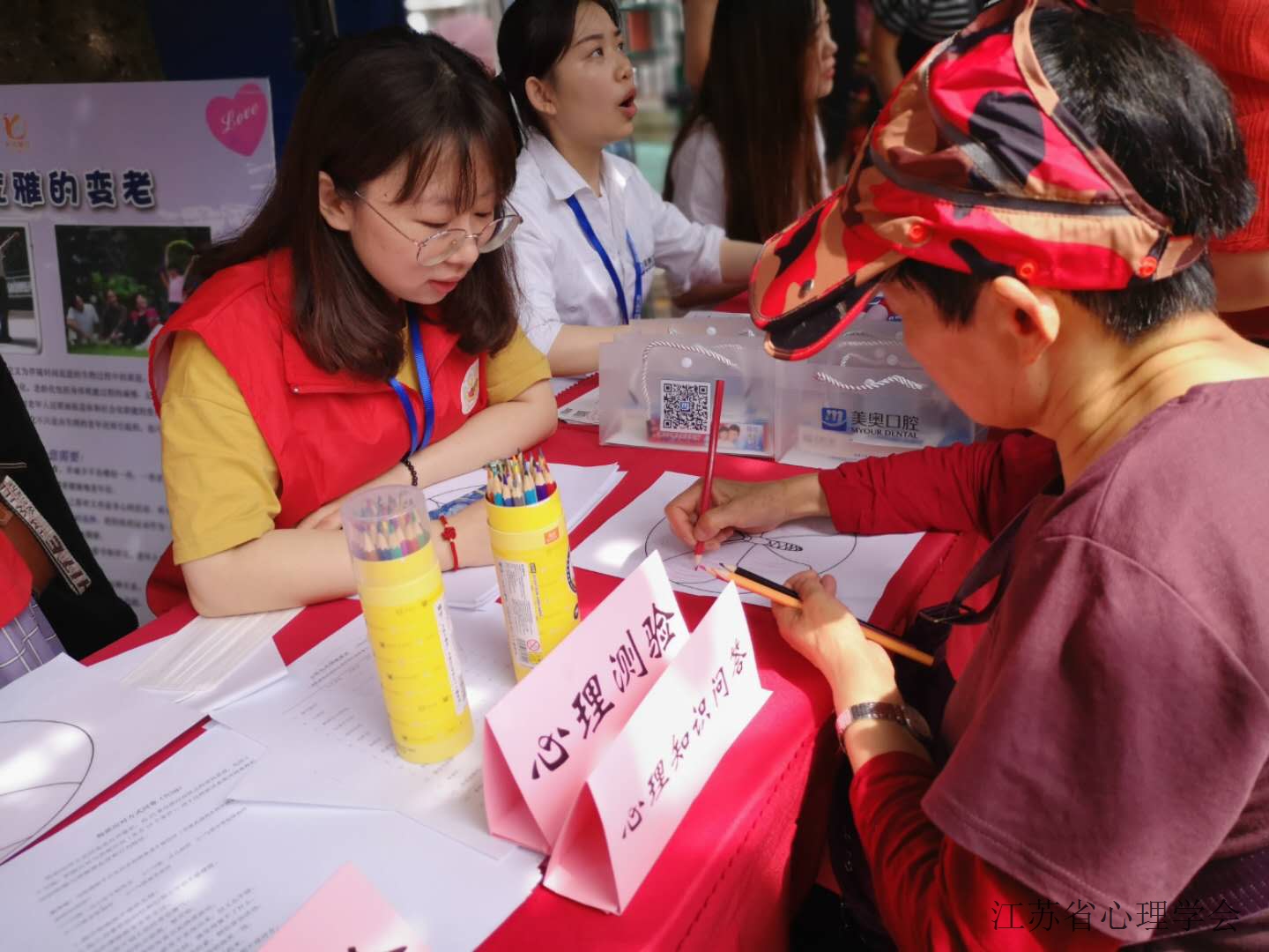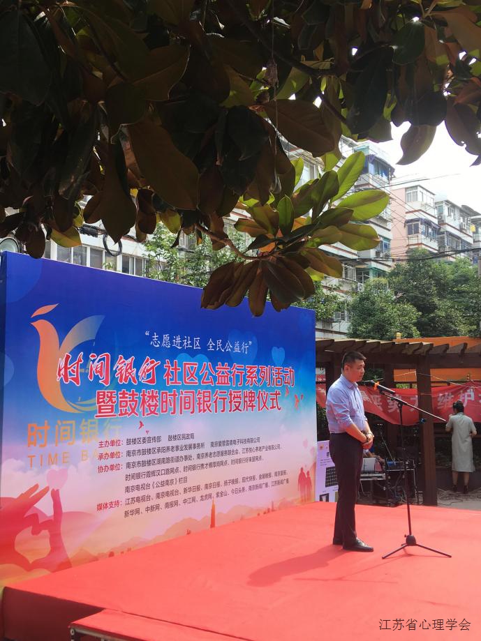 2019年6月27日,由南京市鼓楼区委宣传部、鼓楼区民政局主办的“时间银行”社区公益行系列活动暨鼓楼时间银行授牌仪式在湖南路裴家桥小区顺利举行。本次活动由承阳养老事务所和南京养老志愿服务和联合会等组织承办与协办,本着为老年人服务的宗旨进行了一系列的宣讲以及表演,并设立了多个义诊、口腔护理等多个活动摊位为老年人提供服务。其中江苏省心理学会组织研究生志愿者为老年人提供心理服务。