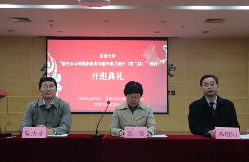 2020年10月25日,由江苏省心理学会和东南大学心理健康教育中心共同主办的东南大学“辅导员心理健康教育与辅导能力提升”(第二期)系列培训开班典礼及第一次课程顺利开展。江苏省心理学会副理事长陈庆荣、东南大学学生处处长秦霞出席开班典礼,典礼由东南大学心理健康教育中心负责人邓旭阳主持。