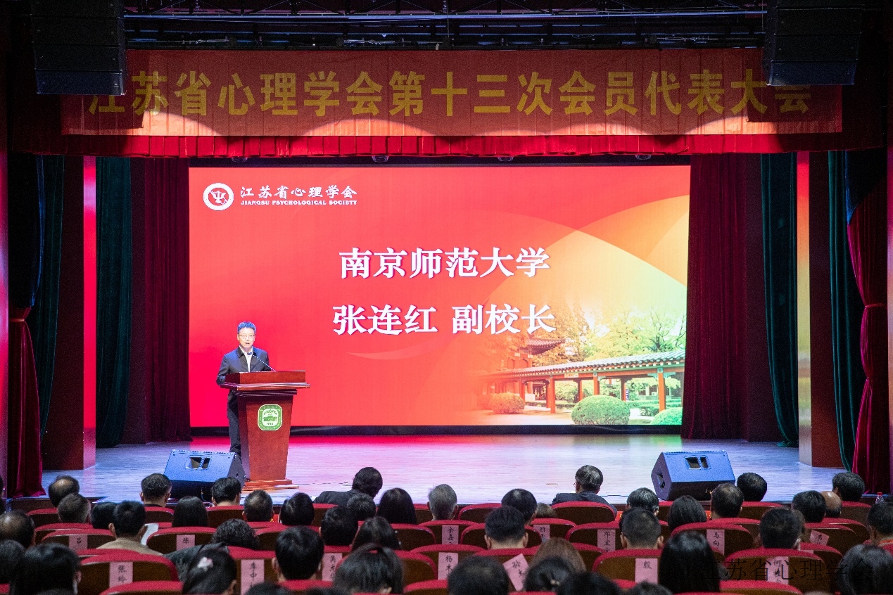 开幕式伊始,会场内全体起立,共唱国歌。接着,由南京师范大学党委常委张连红副校长致欢迎辞。张连红副校长代表南京师范大学热烈欢迎各位领导和会员代表的到来。他概叙了南京师范大学心理学的百年发展,回顾了江苏省心理学会的创立过程。他指出,在70余年的时间里,江苏省心理学会始终能够团结全省心理学工作者用心谋划、主动作为、勇于担当,为江苏和我国社会发展贡献智慧。最后,张连红教授对江苏省心理学会第十二届理事会、第二届监事会的突出贡献表示感谢,向全省心理学会所有同志致以崇高敬意并预祝大会取得圆满成功。