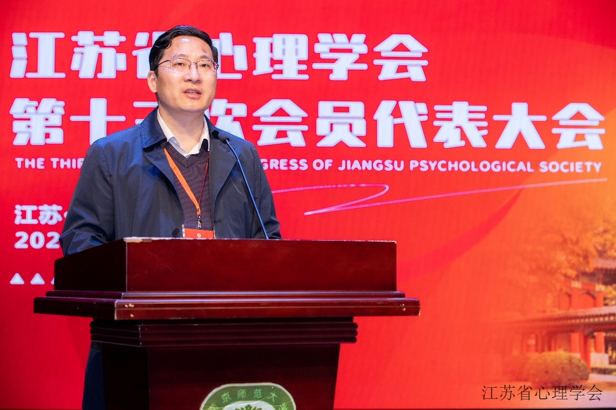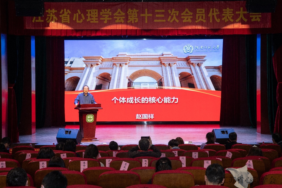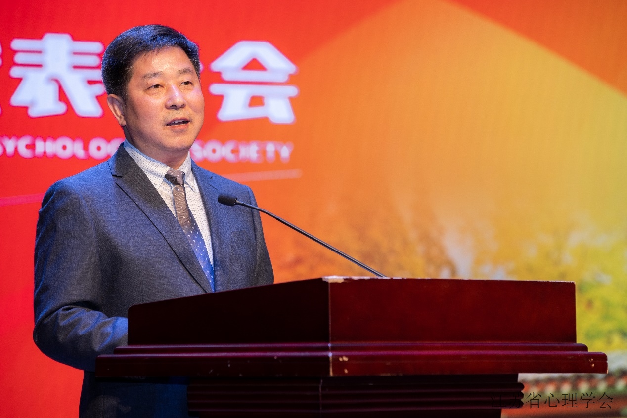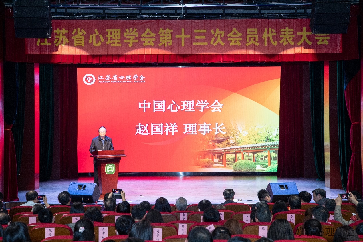 开幕式第四项议程由中国心理学会现任理事长、河南师范大学赵国祥教授代表中国心理学会致辞。赵国祥教授充分肯定了江苏省心理学会在学术交流、人才培养、科普宣传、社会服务和承接政府职能等方面取得的突出成绩,以及为江苏省乃至全国的心理学发展做出的卓越贡献。他也相信,此次代表大会即将选举产生的新一届理事会、监事会能够乐于奉献、勇于创新,为江苏省、长三角地区和中国心理学事业的发展贡献智慧,为中国的心理学建设、为民族复兴大业助力向前。