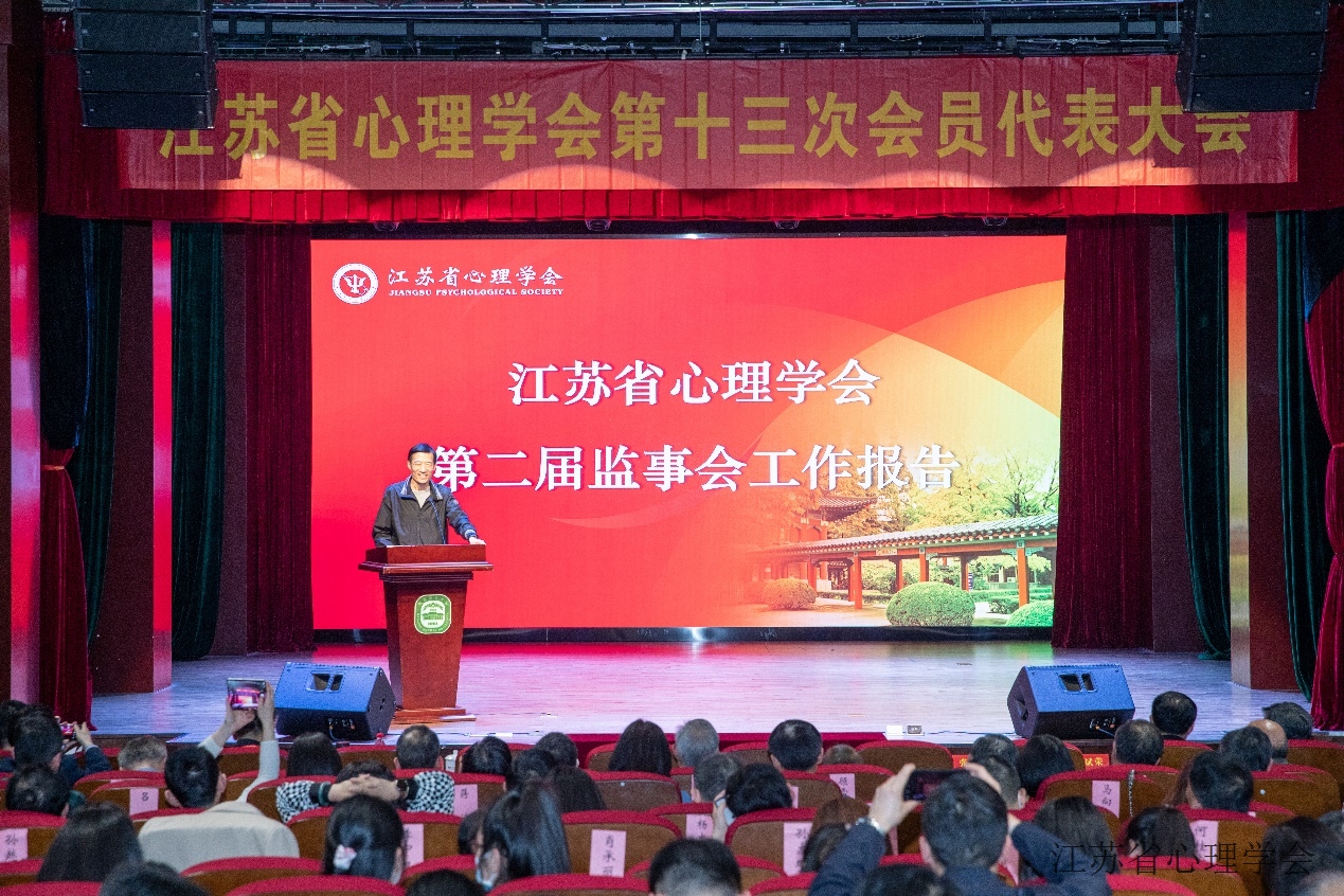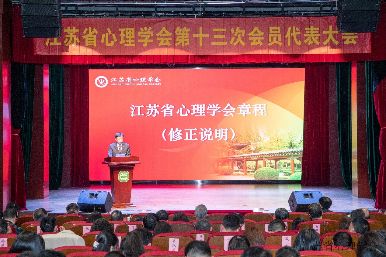 会议第二项议程由江苏省心理学会监事会主席、南京师范大学傅宏教授作《第二届监事会工作报告》。傅宏教授指出,第二届监事会在《江苏省心理学会监事会工作条例》的指导下,监督学会管理、日常活动、财务支出等各项工作的规范性,保证江苏省心理学会正常有序运行。会议第三项议程由江苏理工学院党委书记崔景贵教授作《第十二届理事会财务报告》,汇报第十二届理事会任期内的财务状况。会议第四项议程由苏州科技大学党委副书记、副校长田晓明教授做《江苏省心理学会章程》修正案及会费标准修订,田晓明教授将学会章程中修改部分进行了汇报。以上报告均提请会员代表大会审议并表决通过。