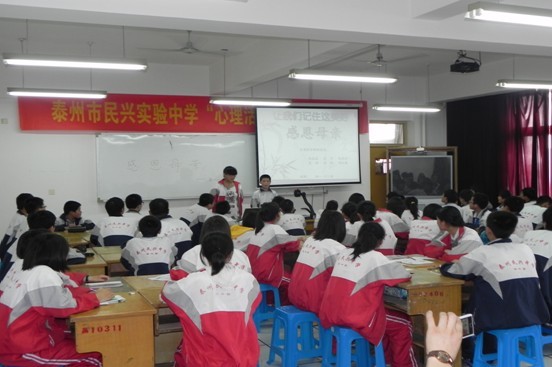 2012年5月31日,由泰州市心理学会主办,泰州市民兴实验学校承办的心理健康教育观摩研讨活动成功举行。到会的领导有泰州市政府文明办未成年人教育处处长凌文杰、海陵区政府文明办未成年人教育科科长陈吉等,共有48位心理学会会员参加此次活动。